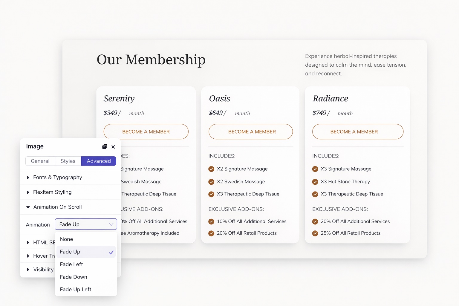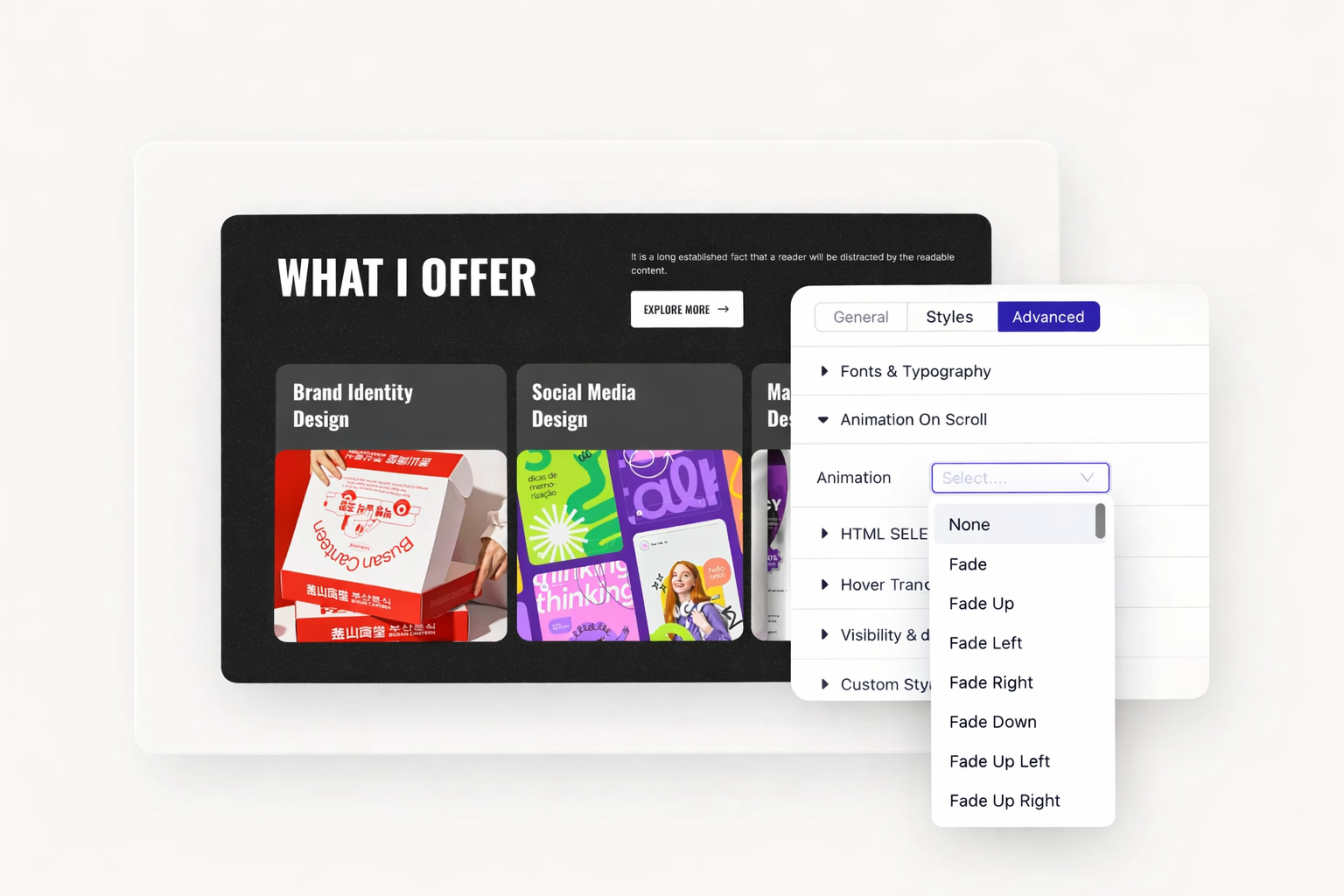 You have three seconds before visitors decide to stay or leave. Subtle scroll effects and hover transitions make them pause on what matters. Add motion that guides attention without touching a single line of code.