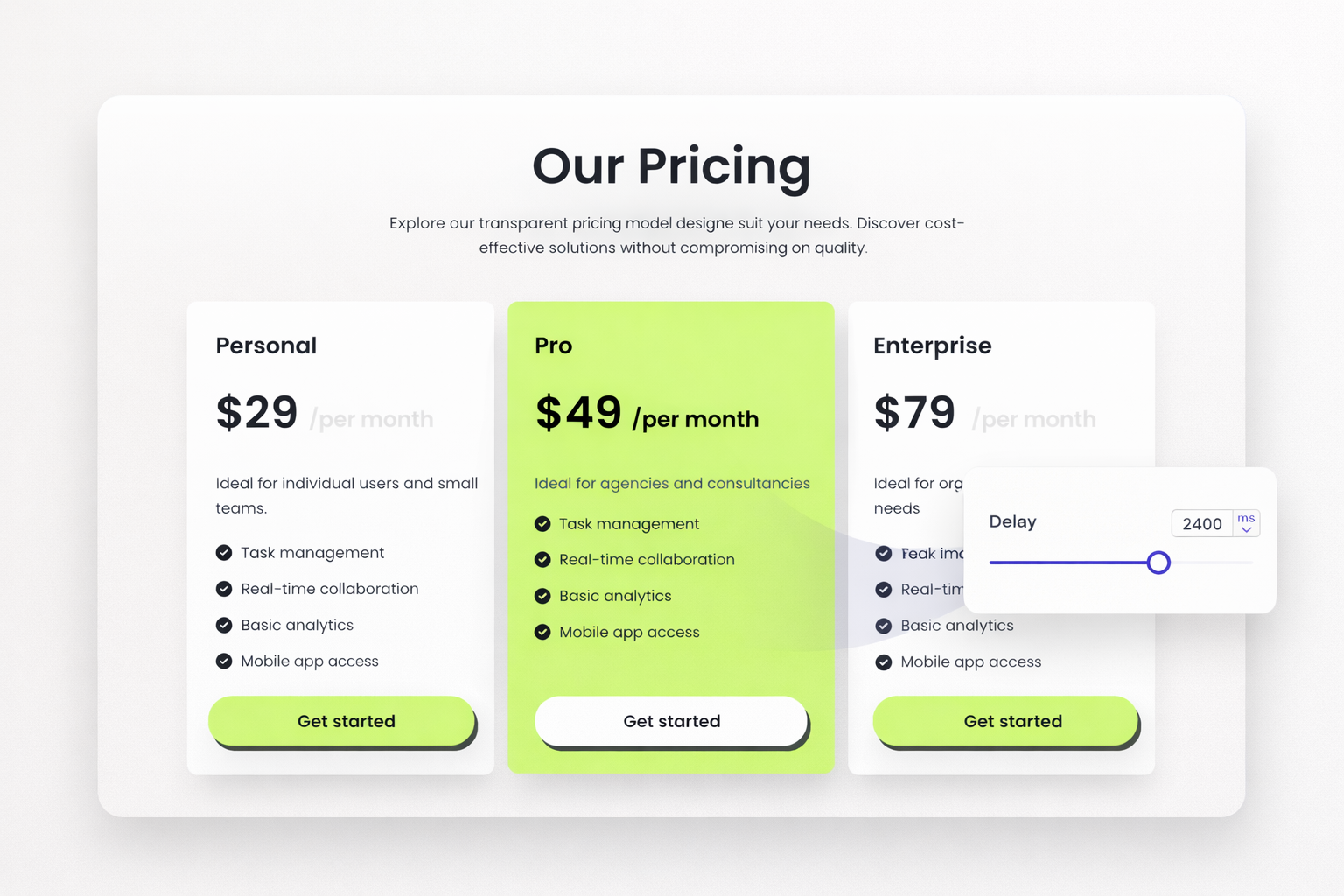 Staggered animations create visual rhythm. Delay the second element. Delay the third a bit more. Content reveals in sequence, guiding attention naturally. Your page feels choreographed, not chaotic.
