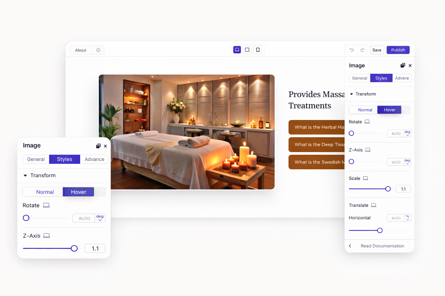 Single transforms are just the beginning. Stack rotation with scaling. Add translation to skewed elements. Create unique visual effects that match your brand personality. Preview changes instantly before publishing.