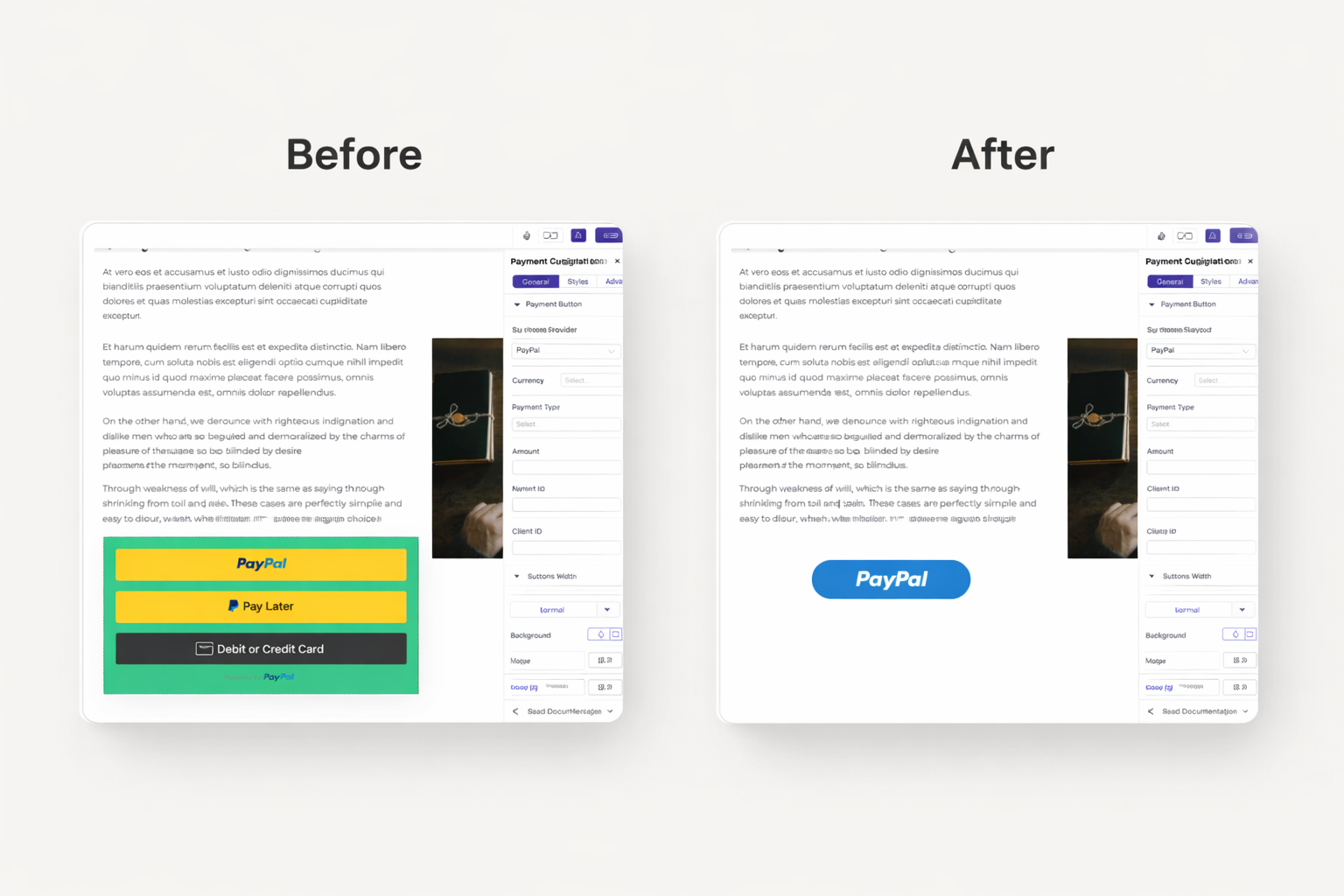 Match payment buttons to your brand. Change colors, text, and styling. Buttons blend seamlessly with your design. No generic checkout experiences.