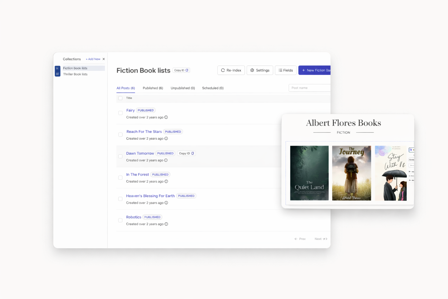 Build product galleries using Dorik's collections feature. Add images, descriptions, and pricing. Link each product to its payment button. Perfect for limited catalogs.