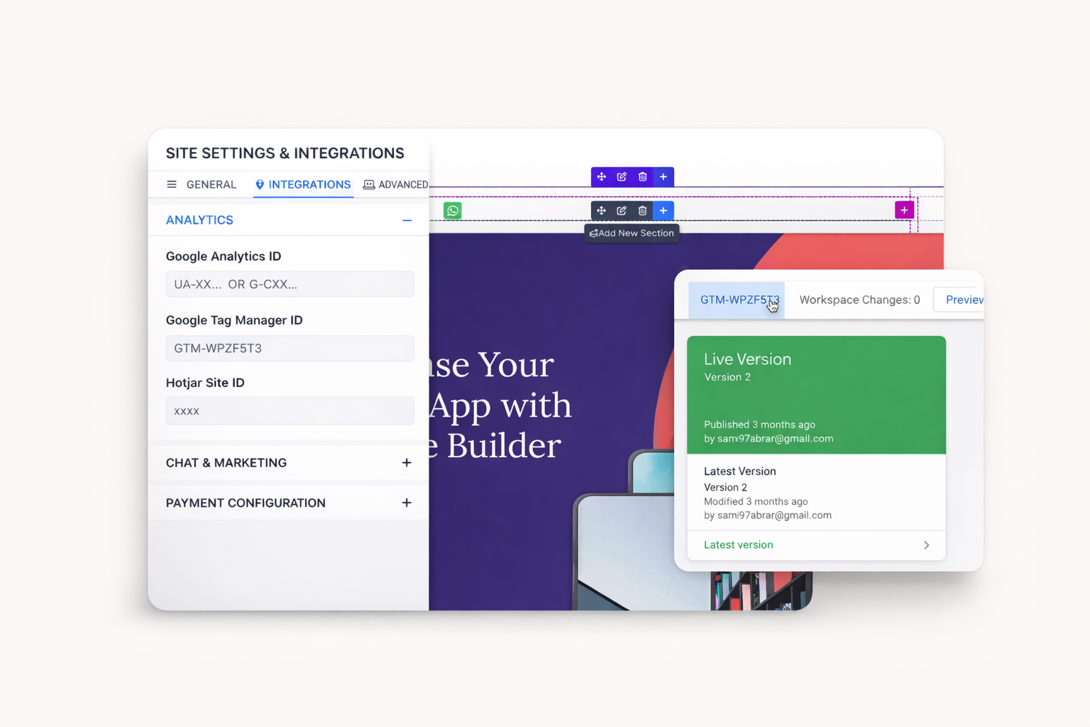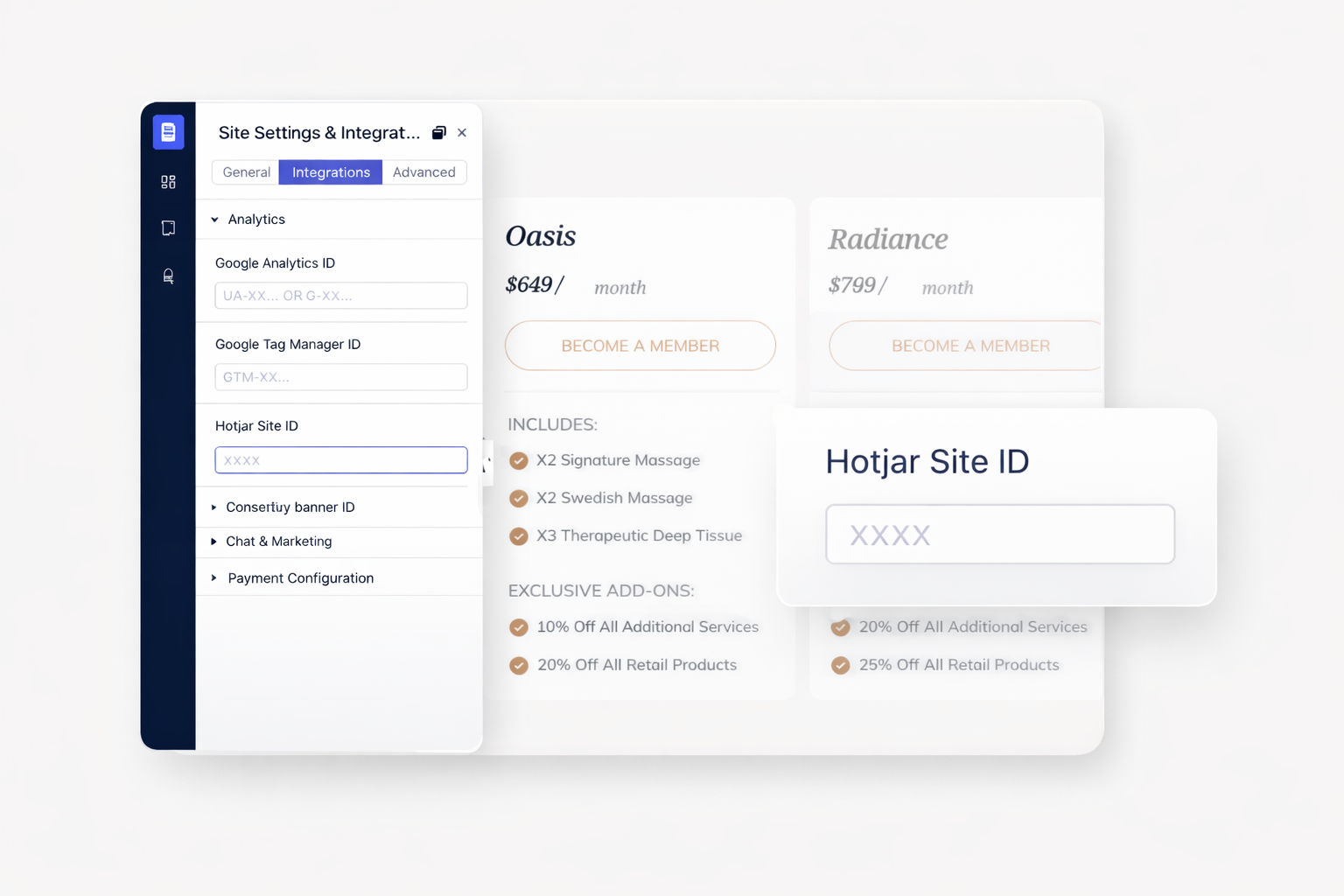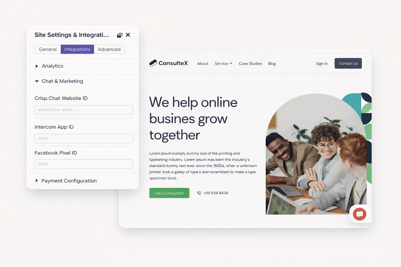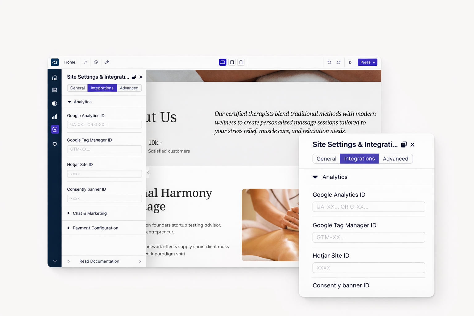 Most integrations require only an API key or account ID. Setup typically takes under five minutes. Paste credentials in Dorik site settings and publish. Changes go live immediately.