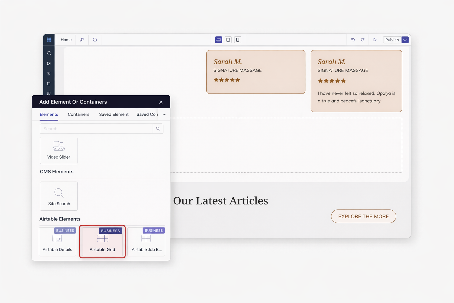 Turn spreadsheets into website content. Airtable integration supports tables, grids, job boards, and detail pages. Real-time sync keeps content fresh. Formula, Rollup, and Lookup fields work perfectly.
