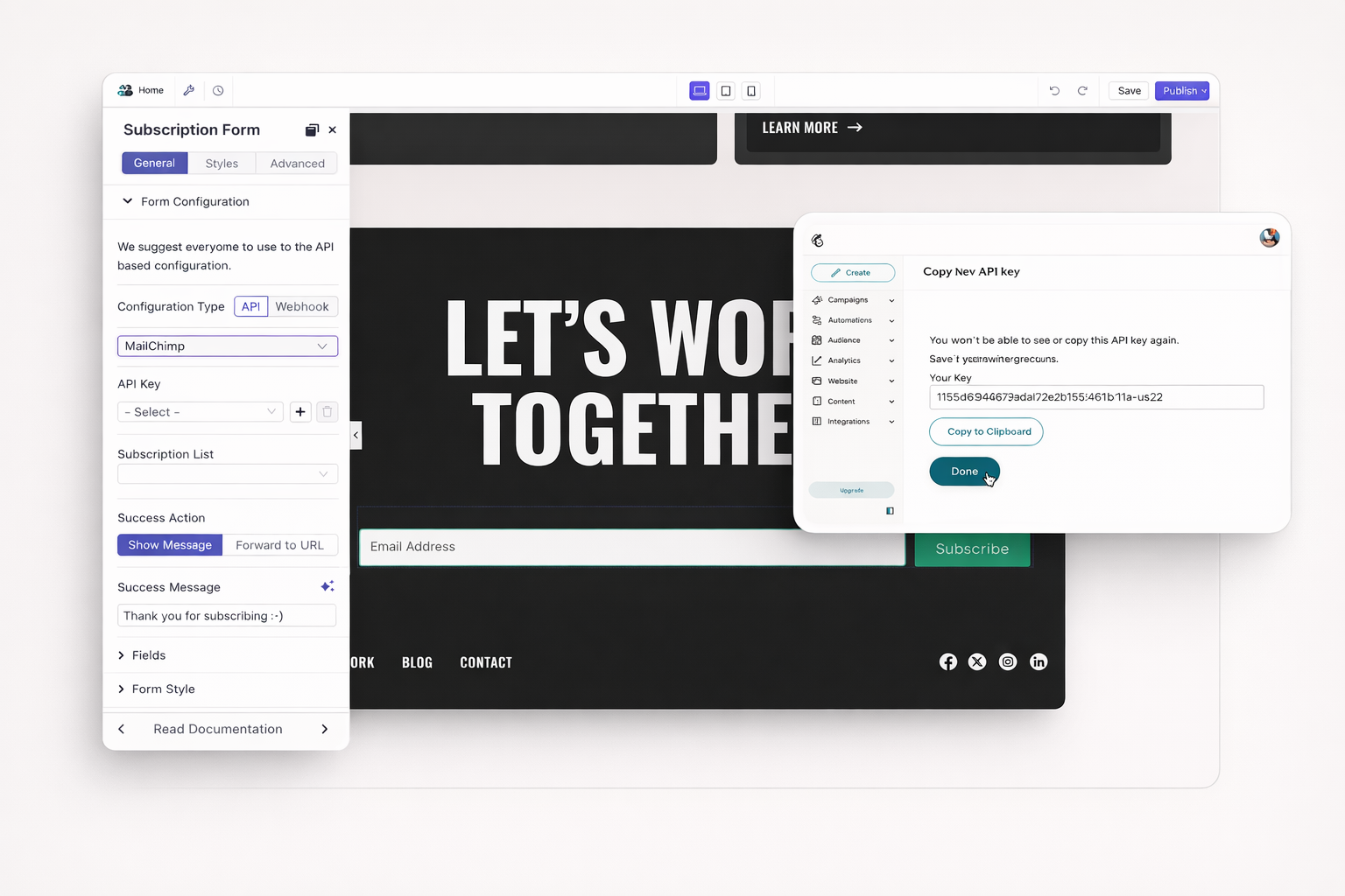 Capture leads and grow your list automatically. Connect MailChimp with Dorik forms using native API integration. New subscribers appear in your MailChimp audience within seconds. Set up takes under five minutes.