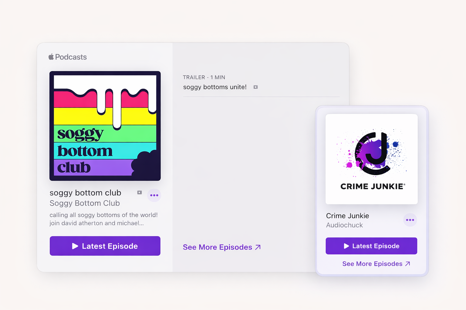 Grow your audience through your website. Embed Apple Podcasts and Spotify players directly. Visitors can listen without leaving your site. Promote new episodes alongside show notes.