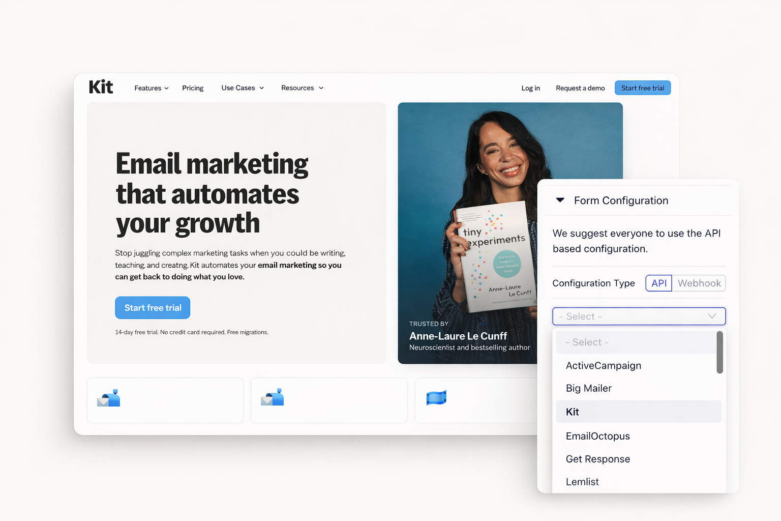 Connect Kit through direct API or webhook integration. Trigger automated sequences when visitors subscribe. Tag new contacts based on form source. Built for bloggers, podcasters, and online creators.