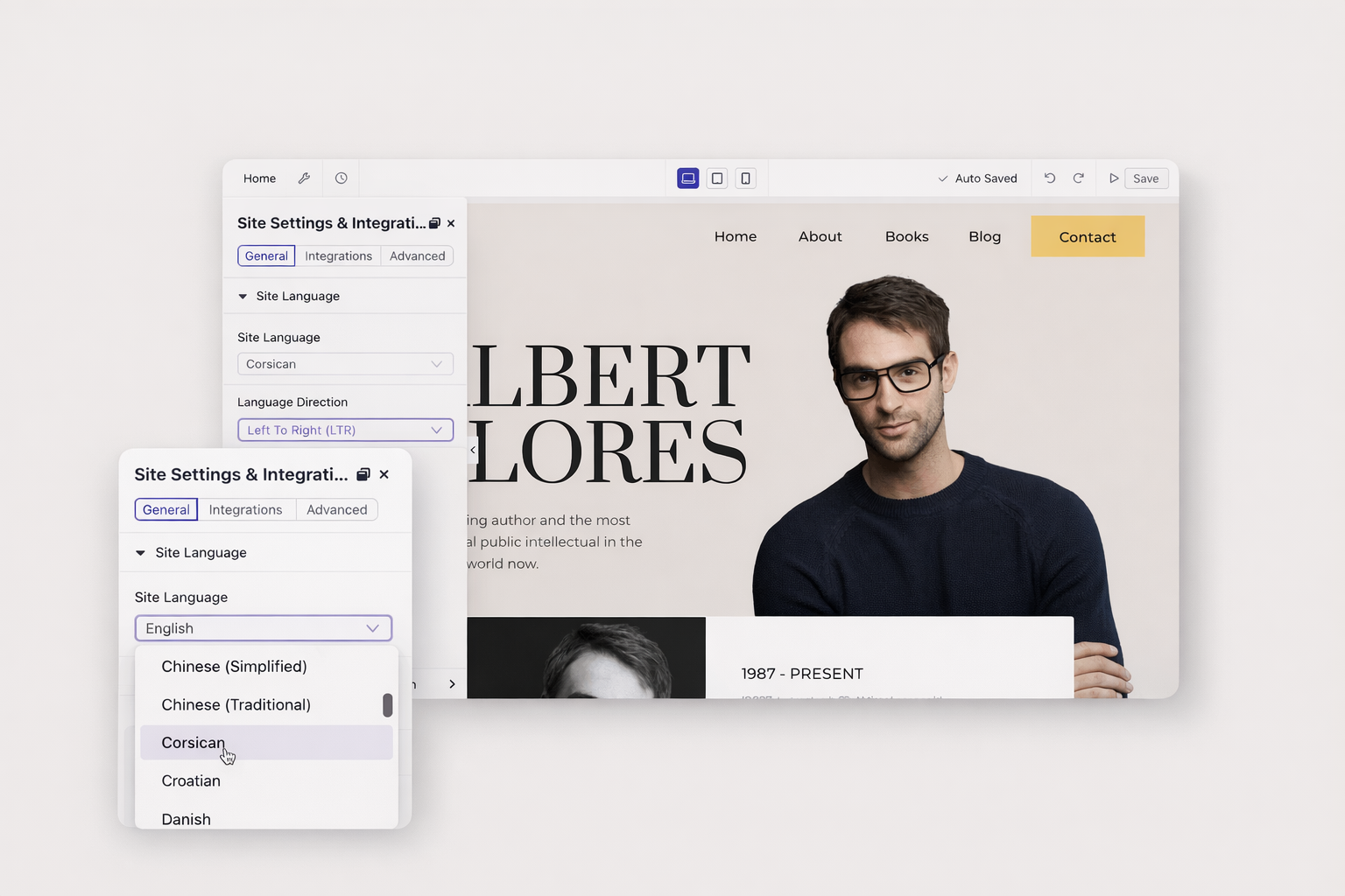 Dorik gives you the tools to reach audiences worldwide. Create separate pages for each language version. Maintain full design control across all translations. Your brand stays consistent in every market.