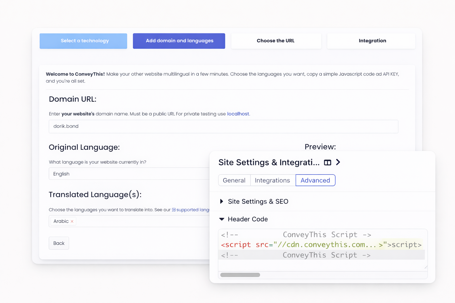ConveyThis works seamlessly with Dorik through custom code. Manage all translations from one dashboard. The tool handles hreflang tags automatically. Your multilingual SEO stays optimized without extra work.