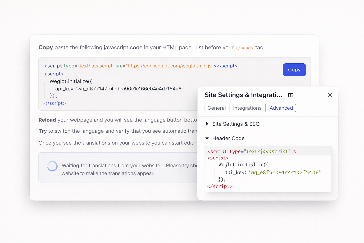 Add Weglot to your Dorik site through custom code injection. Get instant machine translations across your entire site. Edit translations manually when needed. A language switcher appears automatically for visitors.