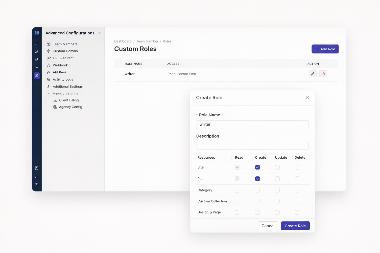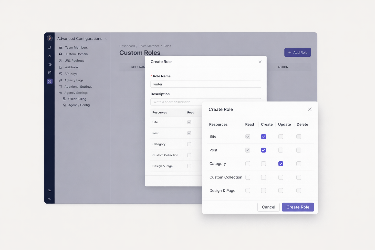 Control permissions at the feature level. Grant create, read, update, or delete rights. Protect sensitive settings. Empower team members appropriately.