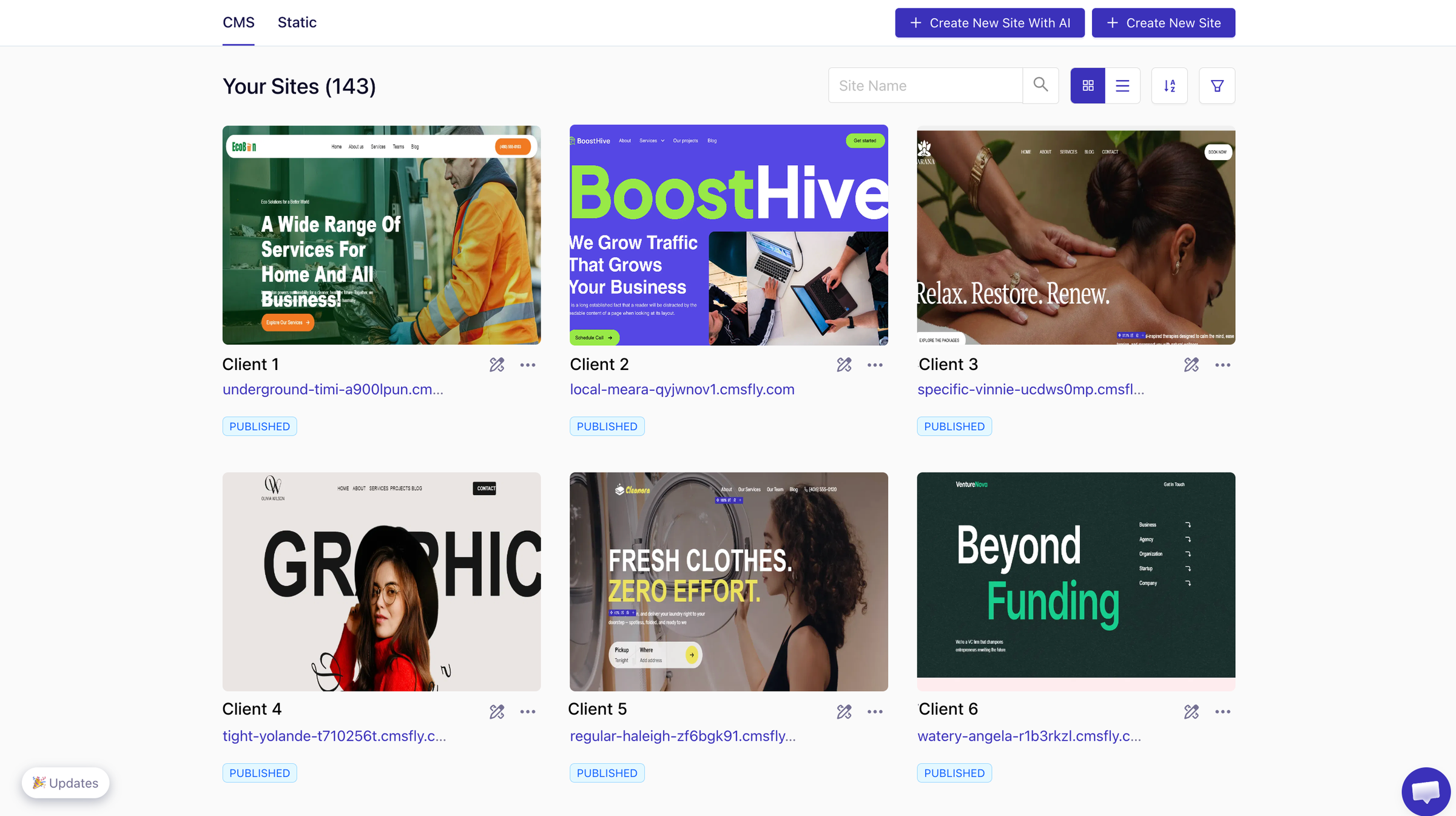 See every client website at a glance. Switch between projects instantly. Track status, deadlines, and updates. Never lose track of client work again.